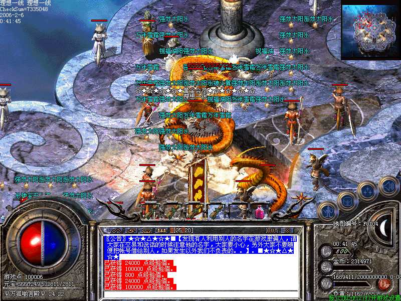 二:本服务器即陪练员系统之后,又开发了一套全新的练级模式:自动刷怪练级厅。在练级厅里不需要手动刷怪了,每搁3秒钟,大厅里就自动刷出怪物让你打。只要你站在大厅里,就会不断有怪物刷出来。进入地点,土城安全区找-高手练级员!服务器打怪经验为盛大的一万倍,爆率为100倍!300级‖獨戰☆兲芐‖套装在变态地图内可以爆出!