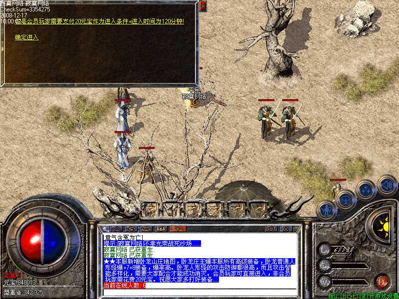 ★★本服新增卧龙山庄地图,卧龙庄主爆本服所有高级装备,卧龙普通人形怪爆+7+8装备,爆率高。卧龙人形怪的攻击防御都很高,而且攻击智能多样化,需要大家配合才能成功消灭。会员玩家可直接进入,非会员玩家需花费20元宝。祝愿大家多打好装备....