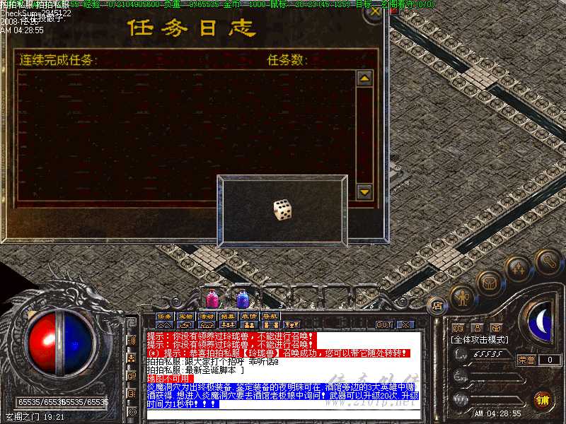 炎魔洞穴为出终极装备.鉴定装备的夜明珠可在.酒馆旁边的3大英雄中赌酒获得.想进入炎魔洞穴要去酒馆老板娘中询问!武器可以升级20次.升级时间为1秒种!!!
