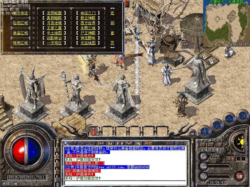 【新增地图】会员可以传送到:龙邪,铁血。辉煌,暗黑,星空,魔域,,,,,等等几十个地图都是打宝的好地方