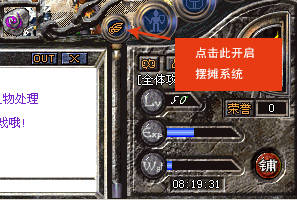 公告:本服务器添加了,离线挂机【摆摊】卖装备.有装备的玩家可以点状态信息栏边上的摊字样.轻松卖装备.