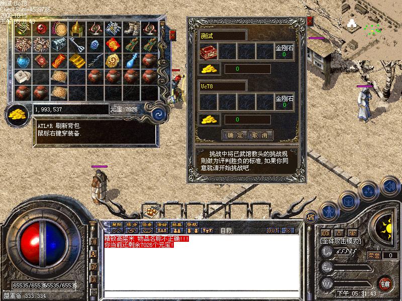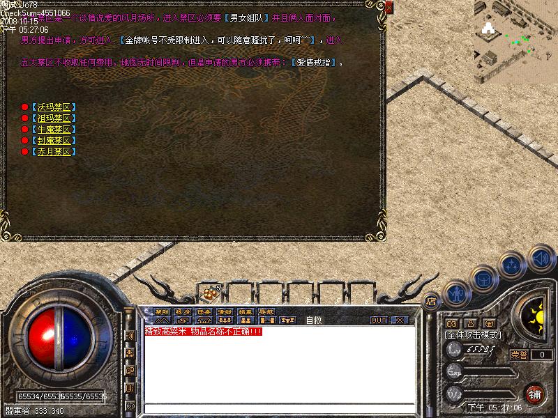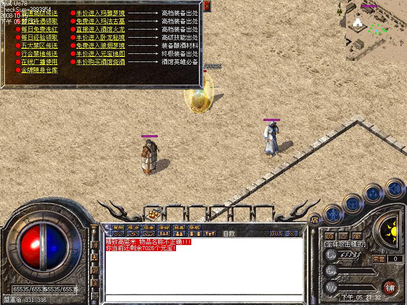 【游戏服务功能】:取消了盟重安全区的其他NPC,整合部分NPC功能到里面,方便玩家点击,节约服务器资源。