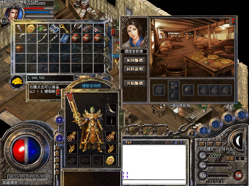 服务器开区第当天天晚上11点 ,1点,3点分别进行开区活动喜欢打装备和元宝的玩家千万不能错过!酿酒材料可以在酿酒材料地图免费打到,加上泉水你就可以酿出自己喜欢的酒了哦,具体请看官网和咨询酒馆老板娘!
