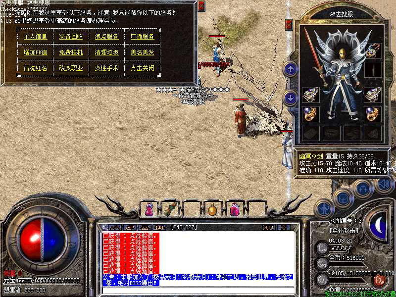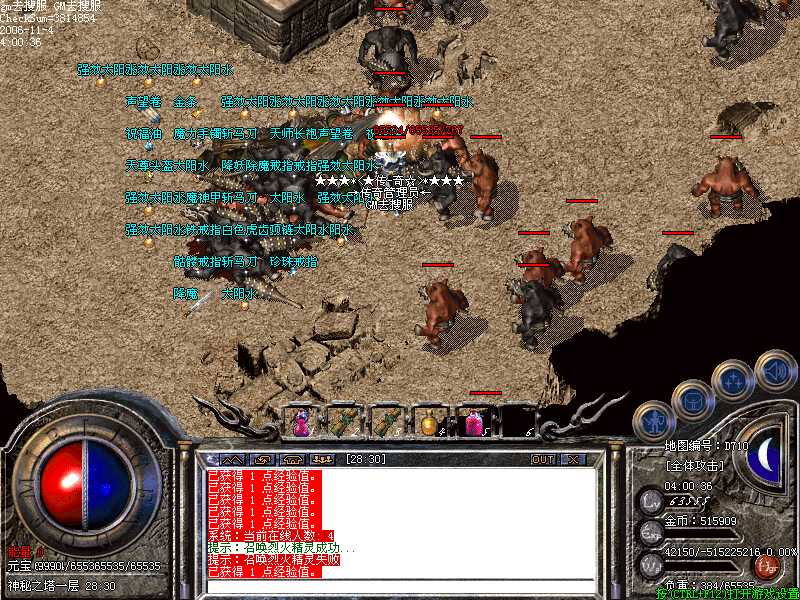 四层真神将给幸运的玩家带来 三件碧血系列装备、麻痹、护身、复活袋子各一个的奖励
