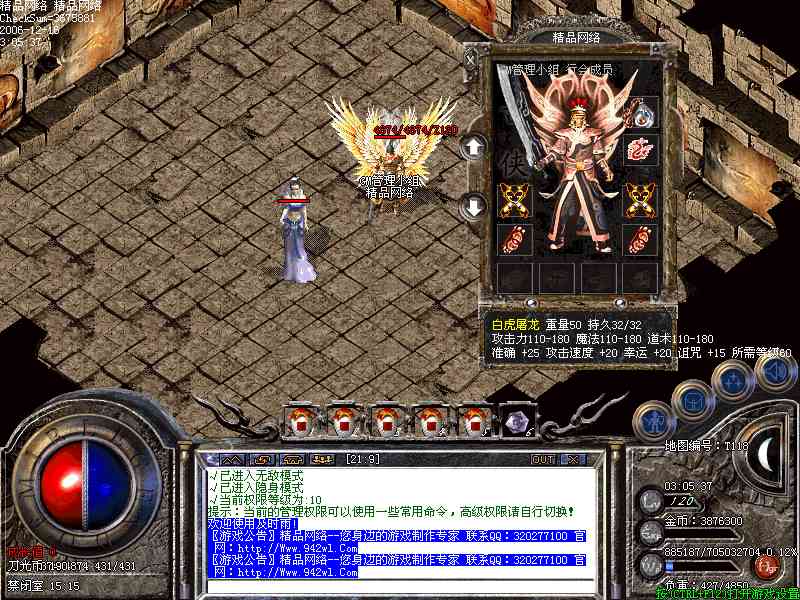 新加屠城,白虎套装。修改爆率装备更容易打。