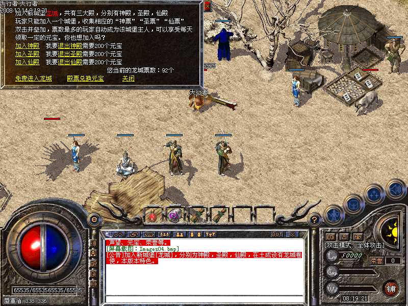 √.加入铁血大旗门勇士,使用元宝可提升玩家属性HP或MP值。