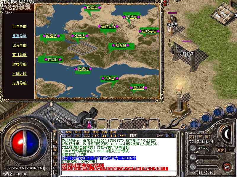 【游戏服务功能】:取消了盟重安全区的其他NPC,整合部分NPC功能到里面,方便玩家点击,节约服务器资源。