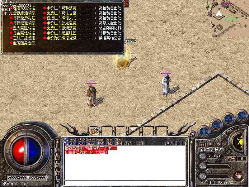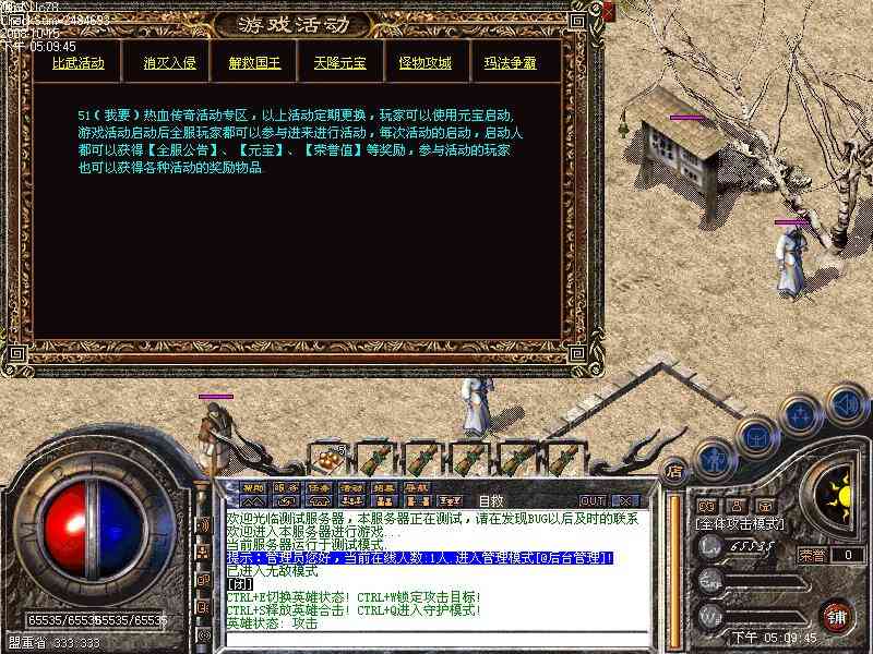 【游戏服务功能】:取消了盟重安全区的其他NPC,整合部分NPC功能到里面,方便玩家点击,节约服务器资源。