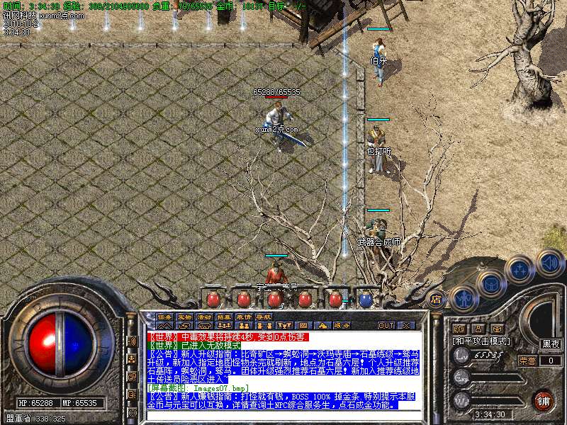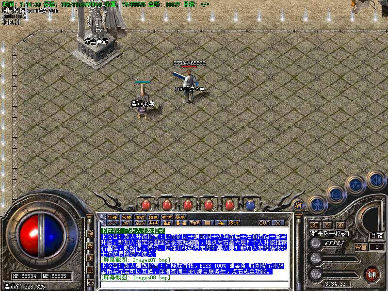 新人升级指南:比奇矿区→蜈蚣洞→沃玛寺庙→石墓练级→驽马升级,新加入指定地图怪物杀完就刷新,地点为石墓六层!个人升级推荐石墓阵,蜈蚣洞,驽马。团体升级强烈推荐石墓六层!新加入推荐练级地土传送员险恶区进入~