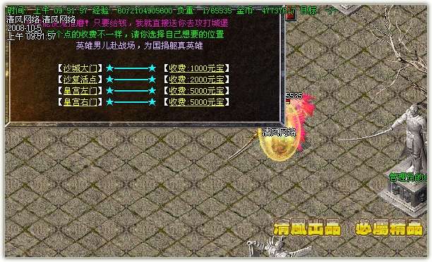 【领地收入】沙巴克的专用领地。玩家进入需要付200元宝.城主可以随时提款50%的元宝