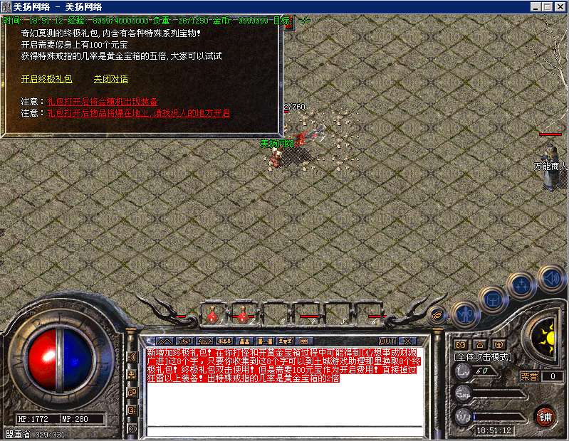 所爆物品:雷霆装备、40级衣服(可回收成元宝)