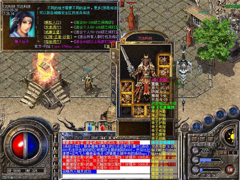 3.增加了帝王、降龙、乾坤三套新装备,打霸王教主、霸王龙可获得.