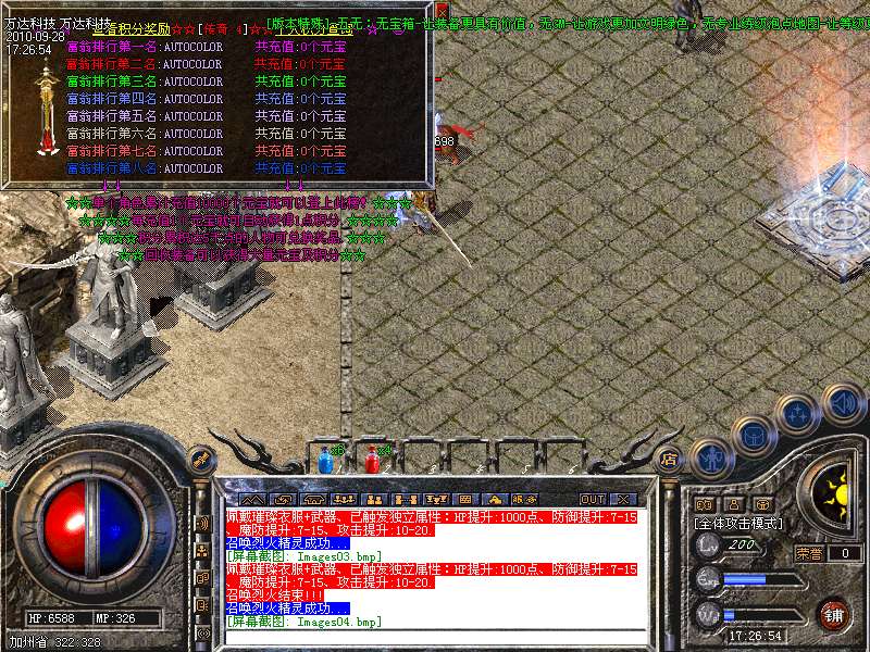 7.攻城奖励改为自动发放,城主每天的22点02分-22点59分可到沙城皇宫的管理员处领取.