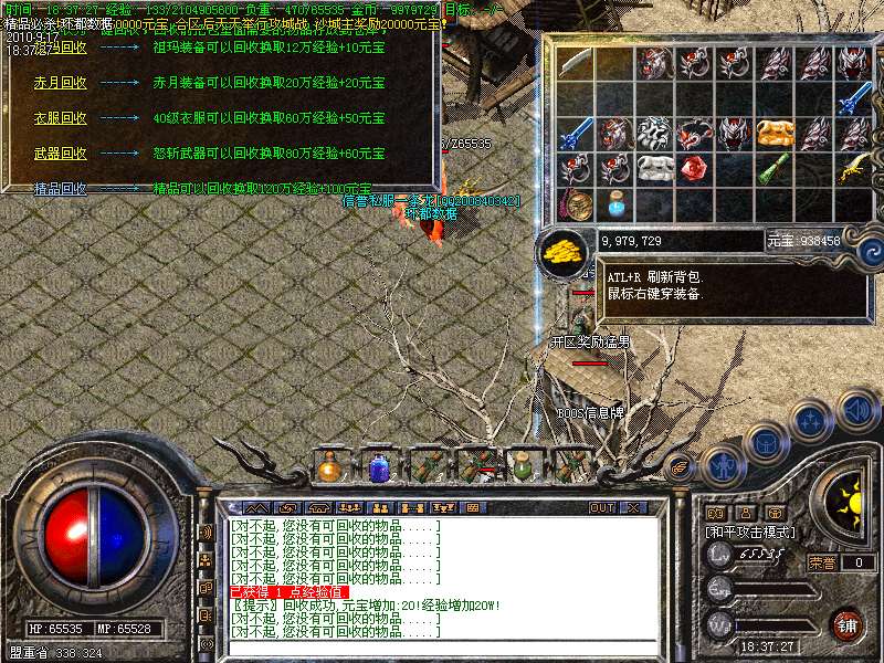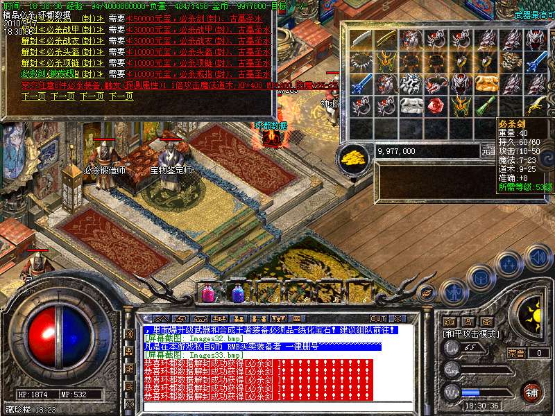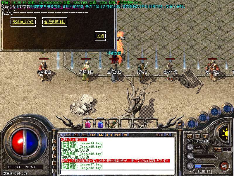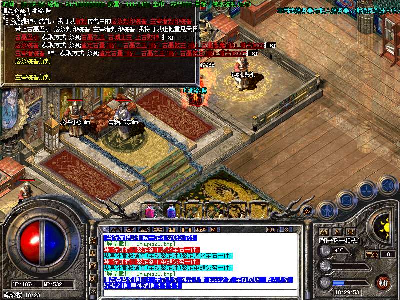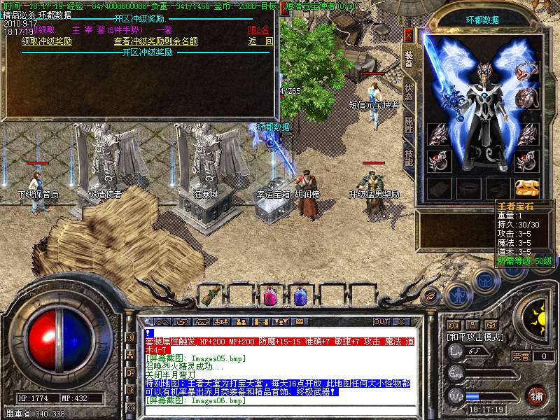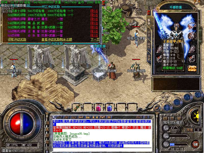 4.特别地图:王者天堂为打宝天堂,每天16点开放.此地图任何大小怪物都可以有机率暴出赤月类装备和精品首饰、终极武器!