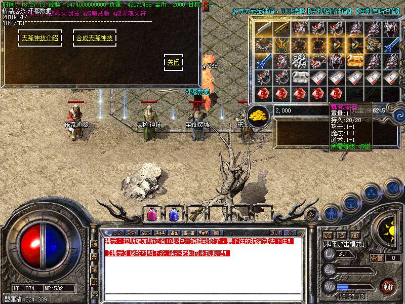 2.武器可升级7点.每次升级时间只需要1秒钟.特别更新:虎年大发、王者天堂的BOSS刷新时间和数量!想打好装备 就在虎年大发,王者天堂!