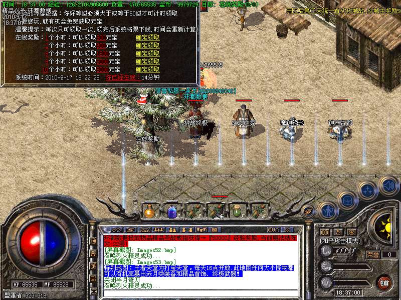 13.土圣诞树:在线累积时间奖励元宝(只要你敢玩我们就敢送,具体奖励请到游戏查看)