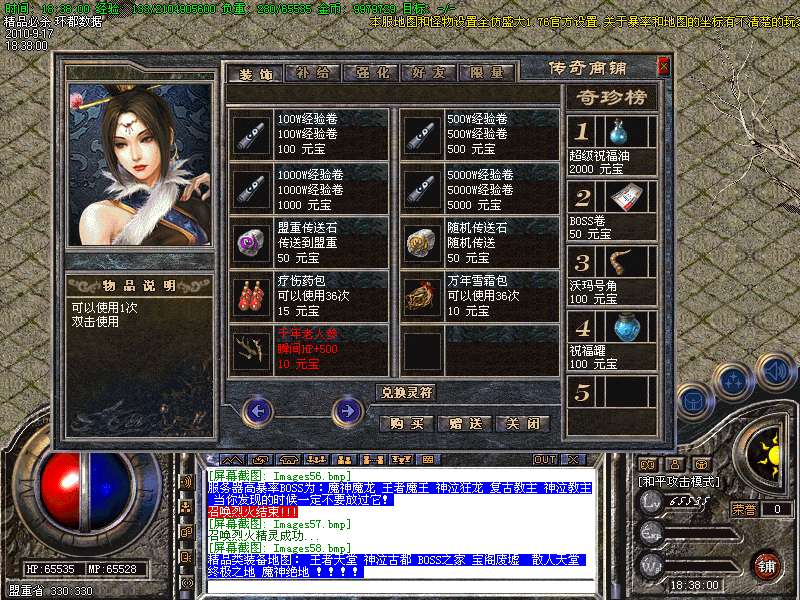 7.精品类装备地图: 王者天堂 神泣古都 BOSS之家 宝阁废墟 散人天堂 终极之地 魔神绝地 !!!!