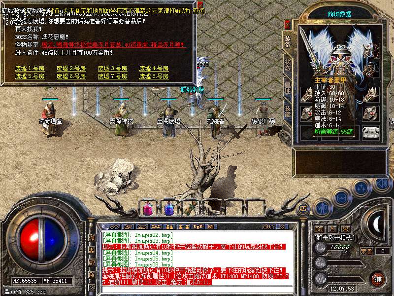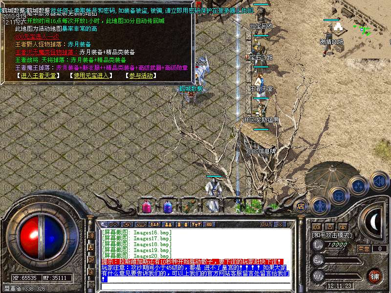 特别地图:王者天堂为打宝天堂,每天16点开放.此地图任何大小怪物都可以有机率暴出赤月类装备和精品首饰、终极武器!