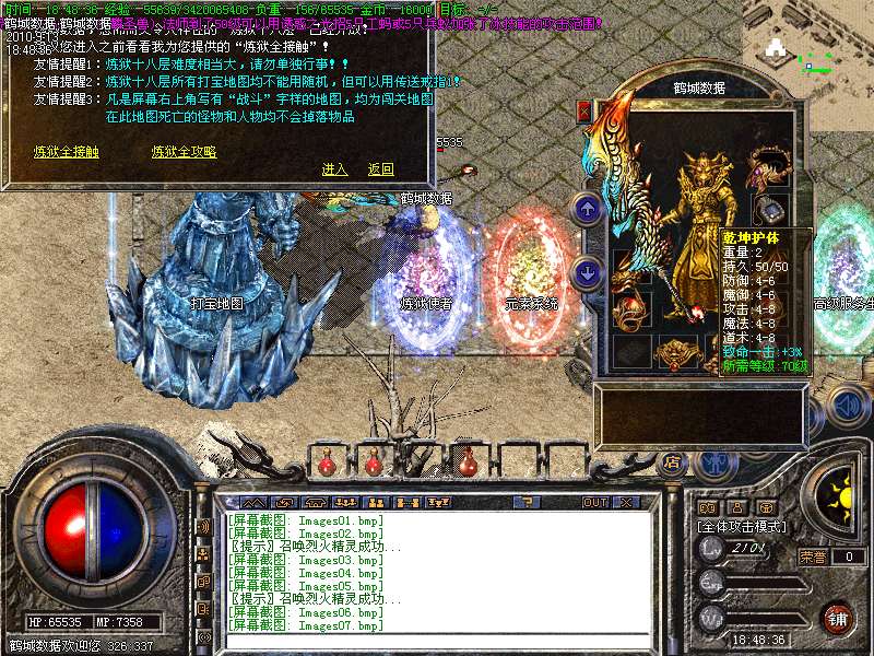1.85内挂2010年最新版本,本服在1.85的基础上添加了新地图【幽灵船-蚂蚁洞-安其拉】等新地图金牛装备元素灵魂系统!
