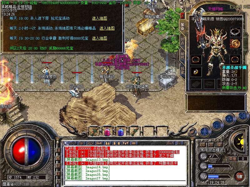 特别地图:主宰天堂为打宝天堂,每天16点开放.此地图任何大小怪物都可以有机率暴出赤月类装备和精品首饰、终极武器!