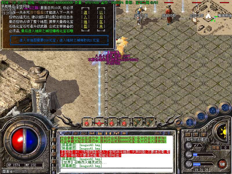 新增加特色地图,地狱之城,里面BOSS携带有本服终极装备。。 难度系数可是非常高哦,建议组队前往。。。