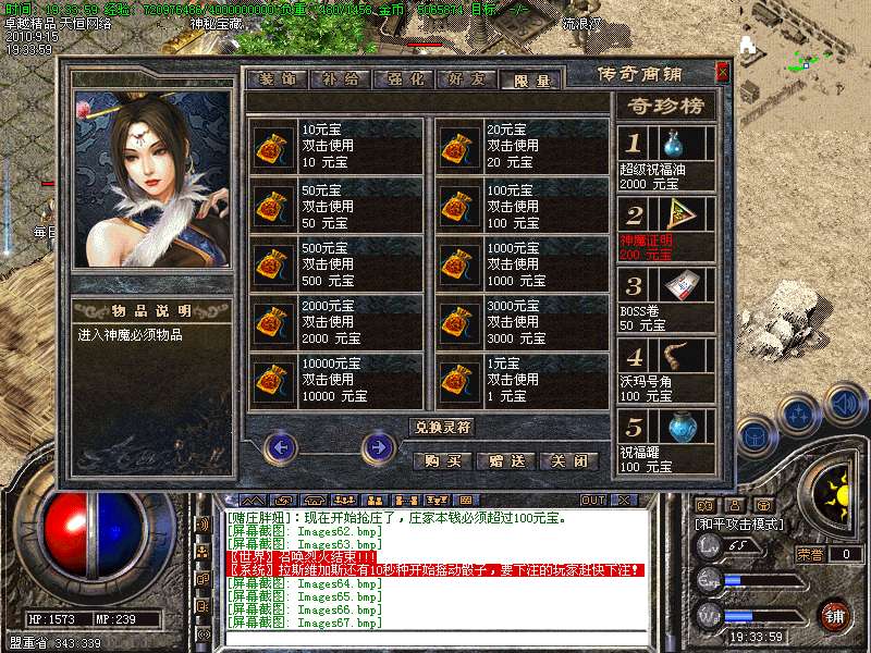 服务器高暴率BOSS为:终极魔王 终极恶魔 阎罗王 主宰魔王 神泣狂龙 复古教主 神泣教主 等等...当你发现的时候一定不要放过它!
