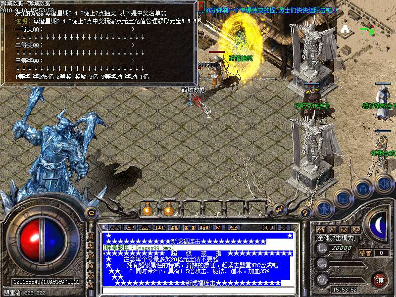 *★★★★★★★★★★ 超 级 戒 指 ★★★★★★★★★★★★ 注意每个号最多放20亿元宝请不要超 ★ 1.拥有超级属性的特戒,贵族的象征,赶紧去盟重NPC合成吧 ★★ 2.同时带2个,具有1.5倍攻击、魔法、道术,加血35% ★★ ★★★★★★★★★★★★新虎福连击★★★★★★★★★★★