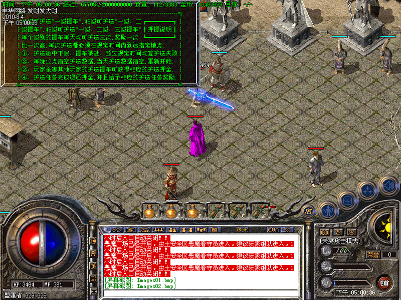 本游戏押镖系统可以赚区元宝和经验,详情请见盟重省的镖局查看.