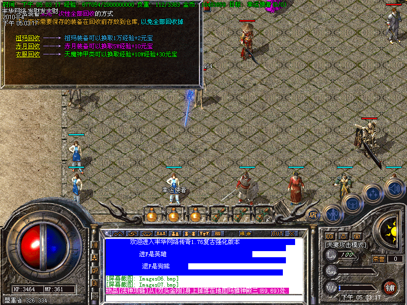 本服务器幻境5为双倍经验地图,适合战士升级;牛魔7刷怪比较多适合法师道士组队升级。