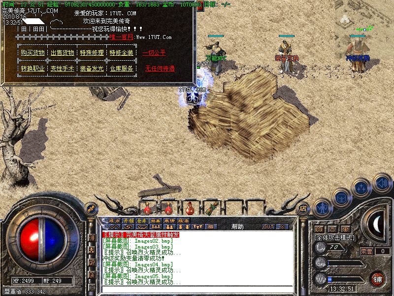 【积分兑换】 打怪获得的积分可以在NPC处兑换高等级装备.