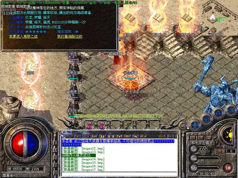 5.【怪物爆率】: 盛大各类教主爆荣耀类装备,魔龙教主,暗之魔龙教主,教皇,蚩尤,赤月恶魔,玛法教皇,雪域魔王....此类教主都有机会爆倚天类装备,荆州,夷陵,益州,白帝城,官渡,赤壁,会员地,倚天,福虎爆率高,顶级装备靠大家花时间就能得到,免费玩家也是顶级套