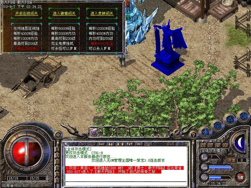 全球首创动态更新服:拿沙之后就退服?顶级之后就无聊?除了打架没事干?本服首创的动态更新技术彻底解决以上问题,攻沙后自动开启近54张新地图,独创的副本地图(每天进去都不一样),近12套最新最炫装备免费换,你还需要什么?