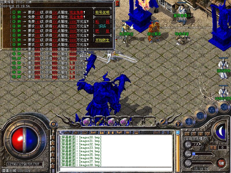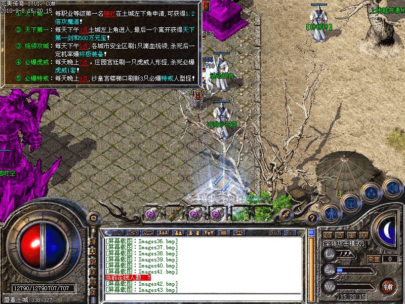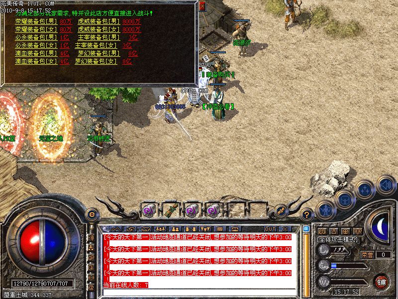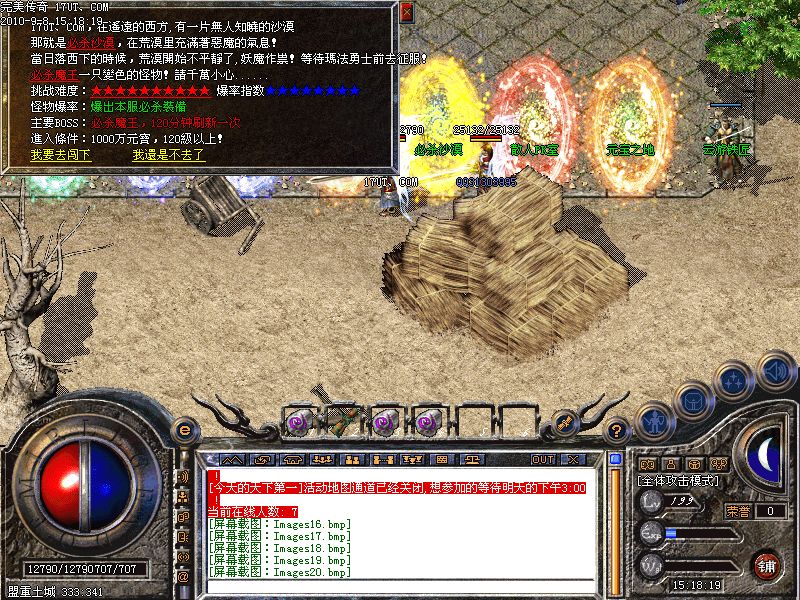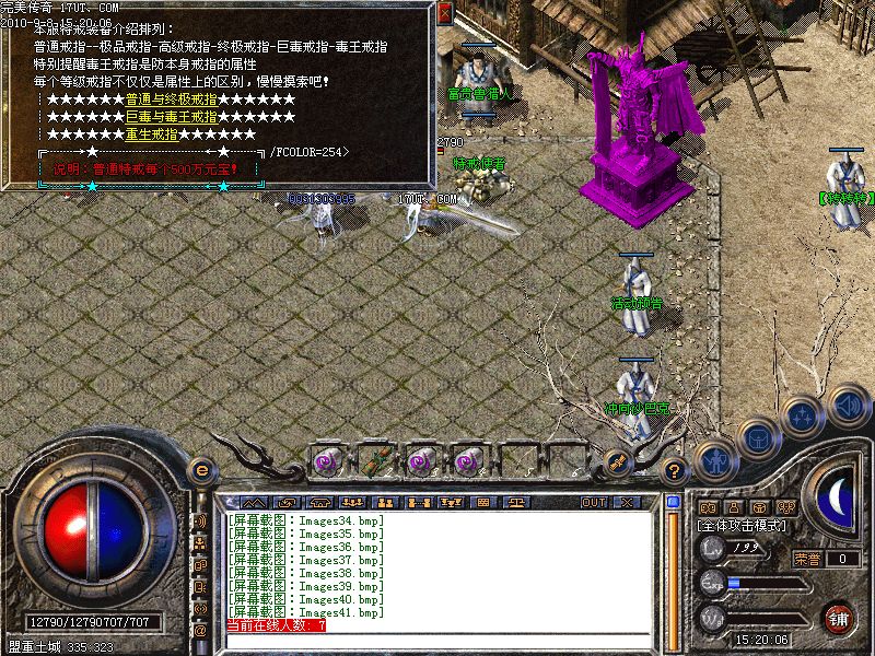 ③.统领攻城:每天下午5点,各城市安全区刷1只滴血统领,杀死后一定机率爆终极装备!