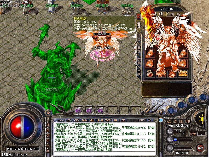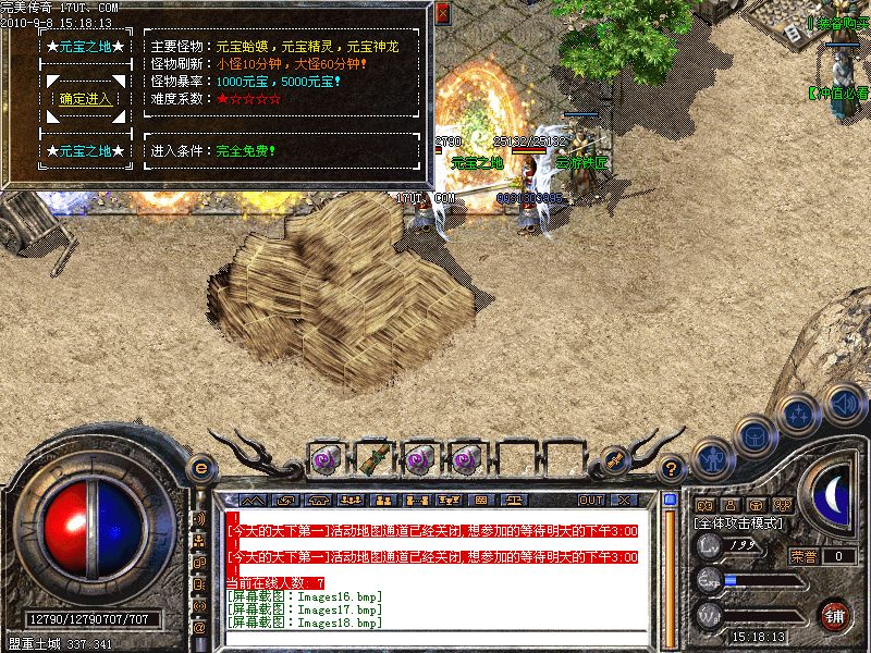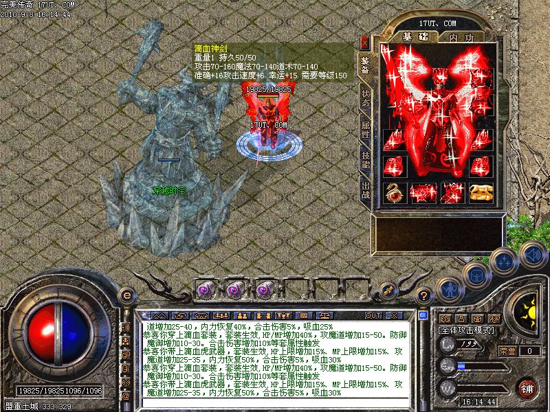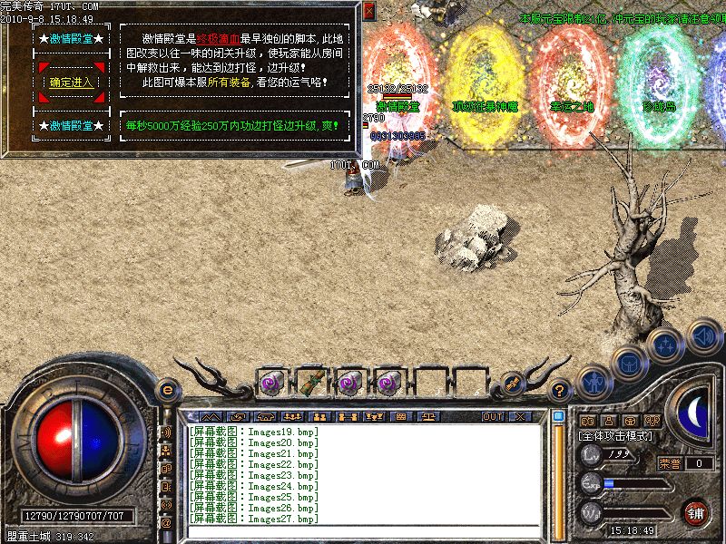 激情殿堂:每秒5000万经验250万内功经验!(可PK区域,可挂到本服顶级200级,内功255级)