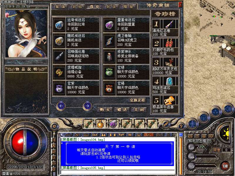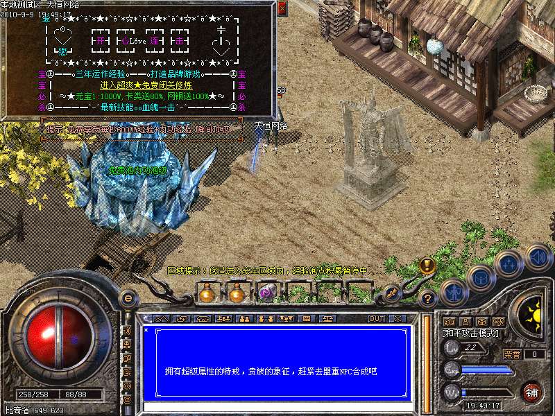 ━═☆天下第一:每天下午3点,土城左上角进入,最后一个离开获得"天下第一剑"和500万元宝━═☆