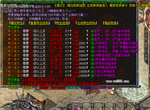 新版3.6虎啸祥瑞.等级调整至185.185 170以后只能靠打怪物升级!开放转生十一转 需要180级+5个银虎 银虎在白虎神身上掉落!