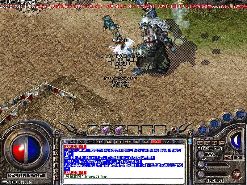 本服务器新区首次拿沙奖励城主500000元宝!沙奖励在22点5分至22点15分找城堡守卫领取!
