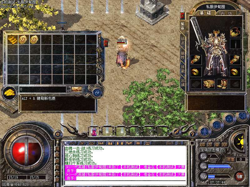 100%仿盛大,实现盛大所有功能,最新盛大双英雄连击、主宰、虎威套装、必杀、辉煌、荣耀套装。押镖系统!更多游戏乐趣请玩家自己体验!