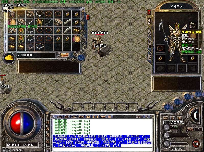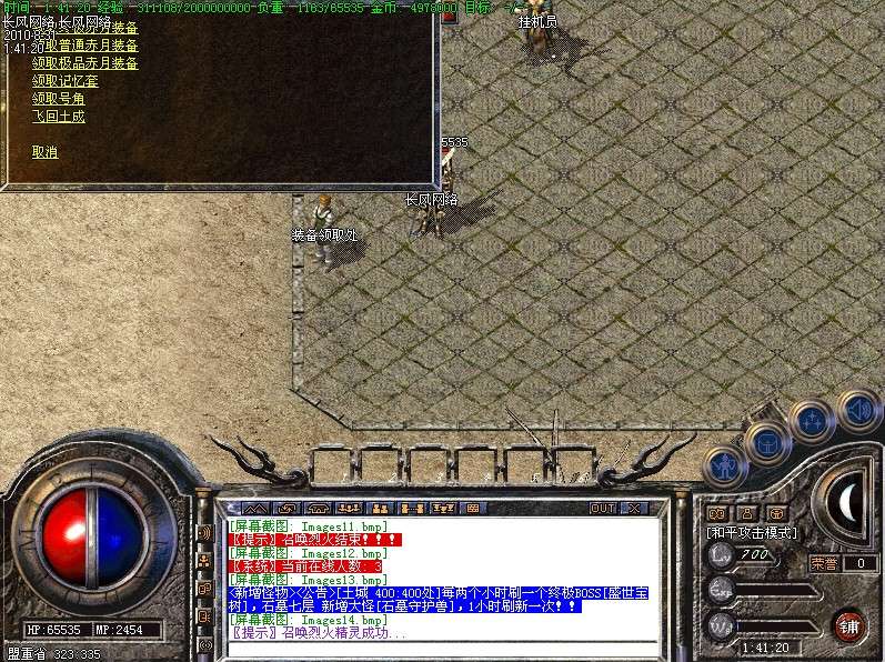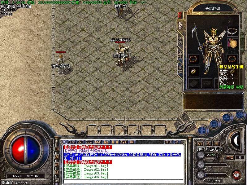 三.【特色活动】封魔谷皇宫内(17,22)与土城药店(356,336)每4小时刷一个终极BOSS〖守护神〗,此怪丧失人性,杀人不眨眼,极其凶险,望各位玩家注意!不过爆率绝对OK!!!