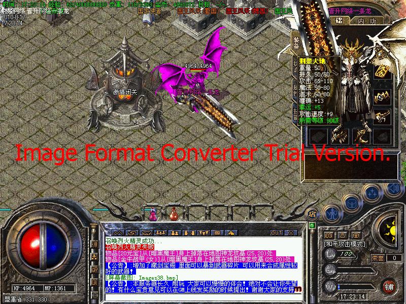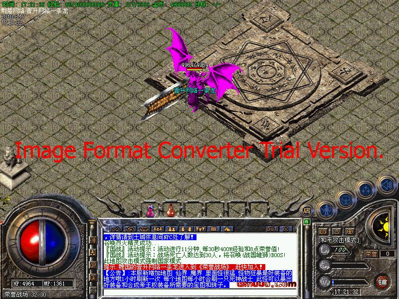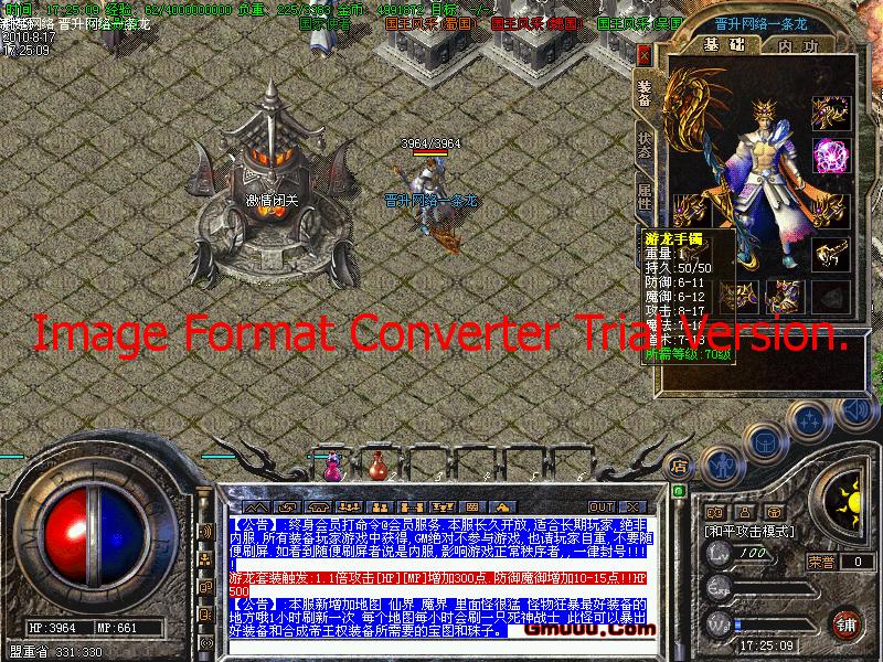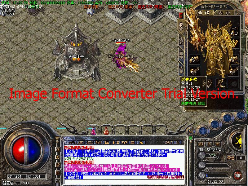 晋升网络2010巨献—1.85三国鼎立灭神元素内挂版,版本采用传奇版本中最新SKY游戏引擎,本服设计绝对人性化,90%的设计参考非RMB玩家的角度去设计.只要您肯花时间,一定可以玩懂,装备丰富多彩,层出不穷,地图更多,特色具全,版本完全考虑到玩家下载装备的不便,完全采用盛大地图,怪物,只需要下载2M的登陆器就可体验全新的传奇,是您长期开区的不二选择.1.85三国鼎立灭神元素内挂版经开区测试,人气及其火爆销售情况剧佳 ,适合客户长期开区. 要做私服一条龙请咨询客服.建议客户传奇一条龙客户1-3天一新区.更多传奇私服版本请点击.