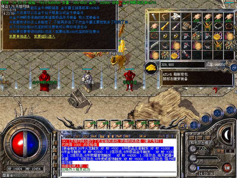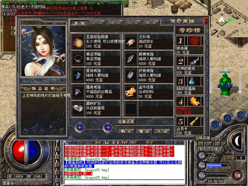 【元宝服务】最新推出元宝系统功能,元宝兑换各种特殊物品及服务.<装备改名>.<终极体验>.<元宝购物>.<神的恩赐>等等....