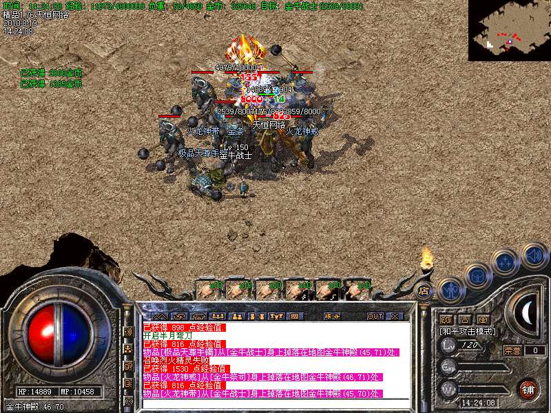 [装备触发]6件火龙触发 HP MP +500 ,6件极品王者触发 HP MP +1000 ,6件金牛触发 HP MP +2000 1.1倍攻击,6件极品金牛触发 HP MP +3000 1.2倍攻击,6件荣耀首饰触发 HP MP +4000 1.3倍攻击,倚天武器+衣服 1.5倍攻击,6件虎威首饰触发 HP MP +6000 1.5倍攻击 强力吸血功能