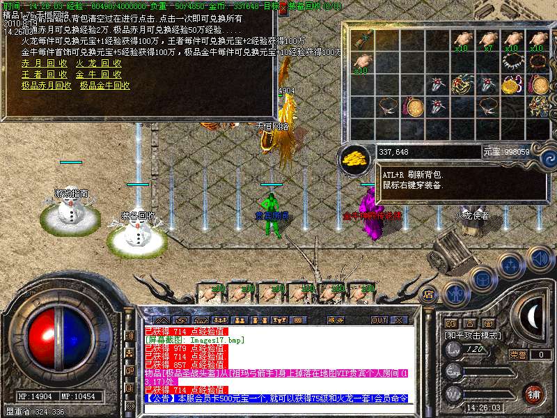 【装备回收】回收方面分两种!元宝回收!经验回收!土330.340查看!