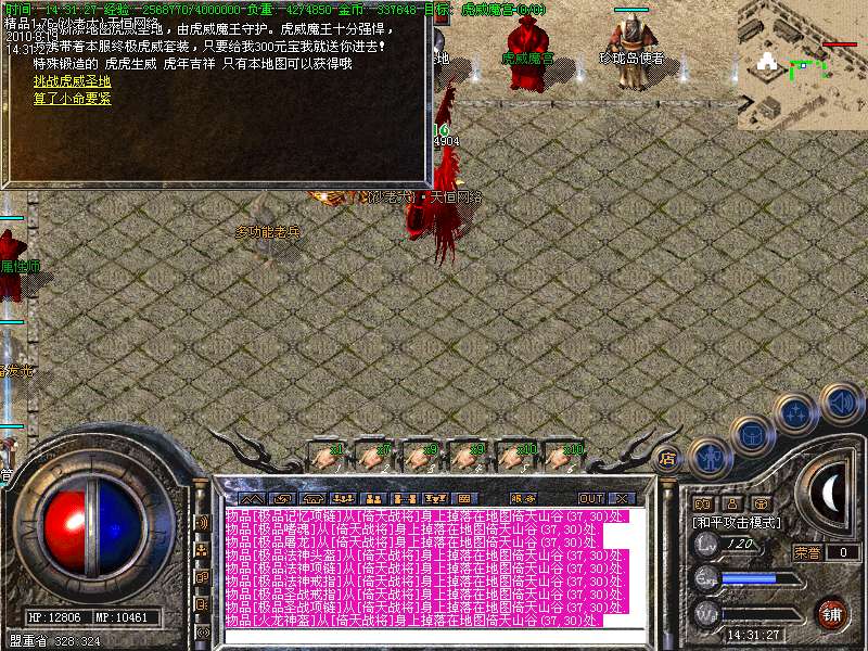 【神的恩赐系统】玩家可以在元宝商店使用获得<神的恩赐>,短暂的时间内激发自身潜能力量.增加人物死亡提示地图.坐标.方便丢了装备的快速找到该地点.