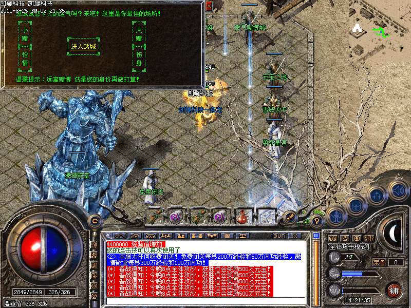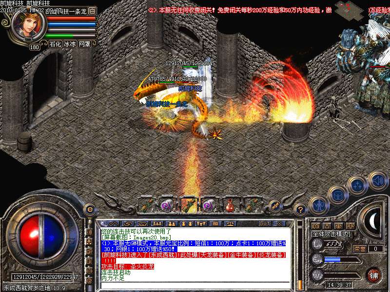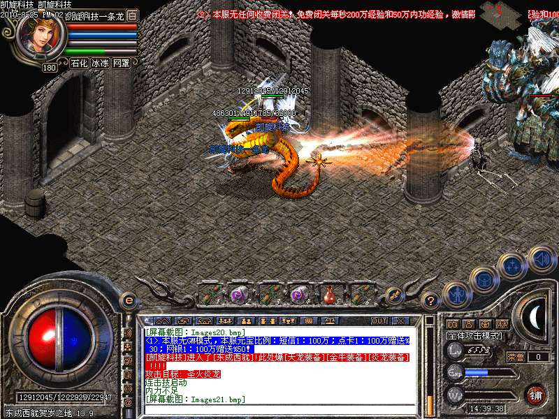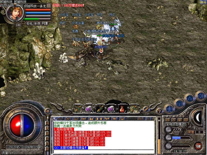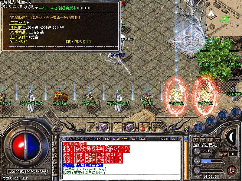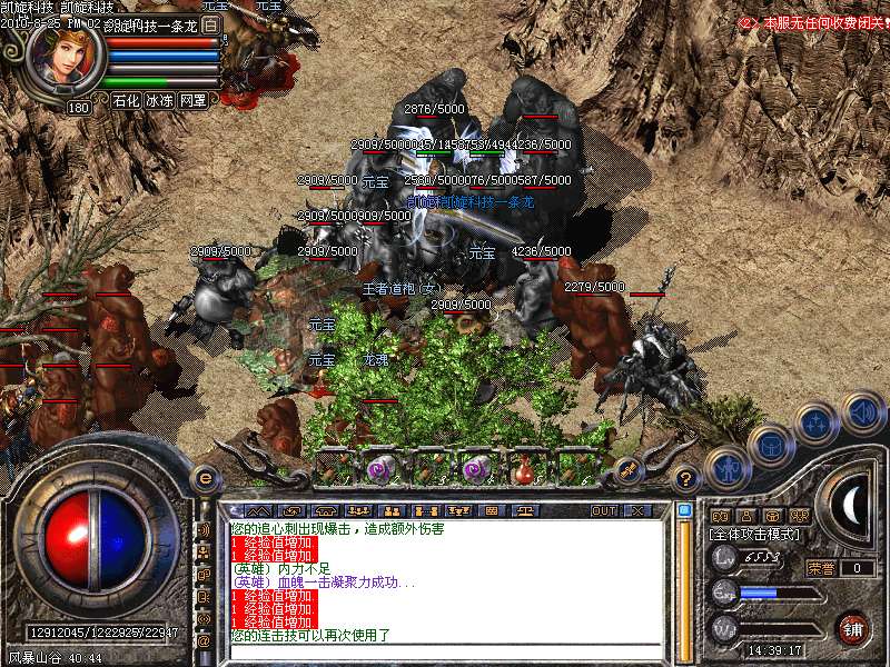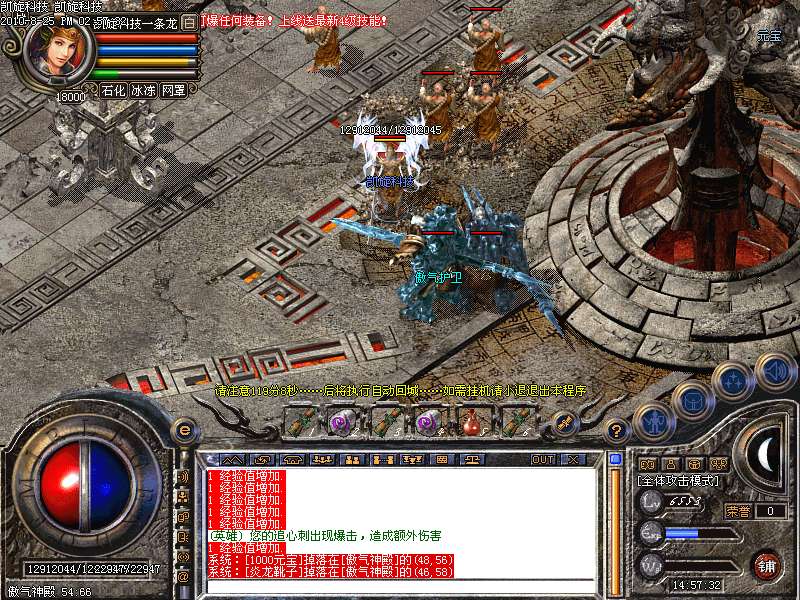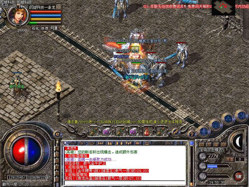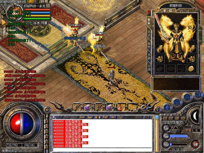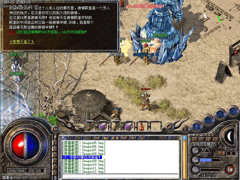 激情殿堂: 打初中级装备,另外进入本地图可和免费闭关一样自动获得100万经验和内功经验!