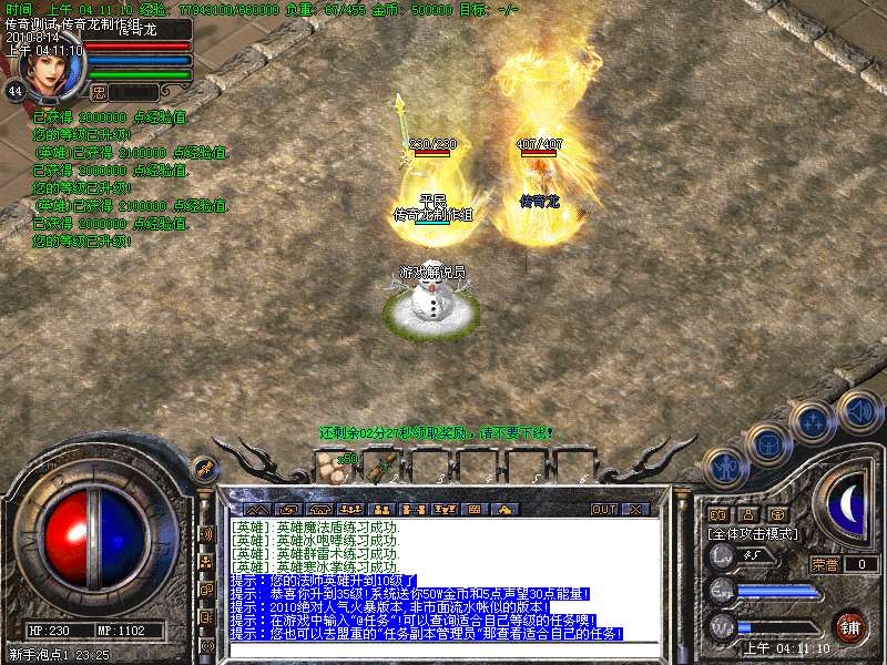 2010.08.04 增加了新手上线泡点时间1秒200W经验