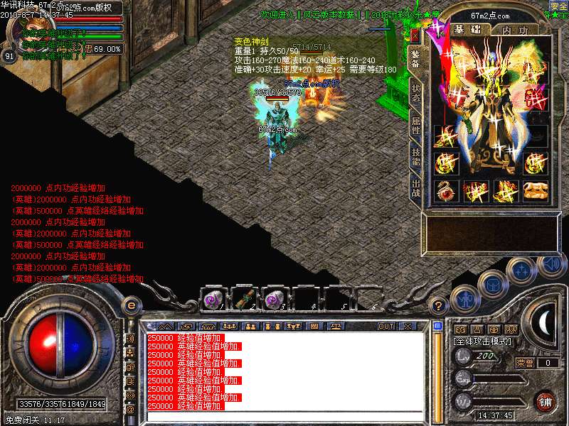 激情闭关:每秒1200万经验200万内功经验!(可PK区域,可挂到本服顶级200级,内功255级)