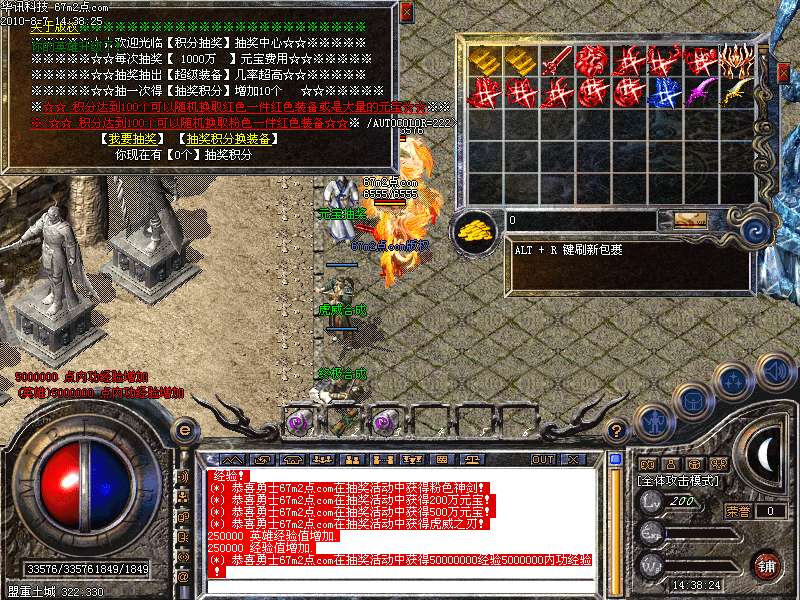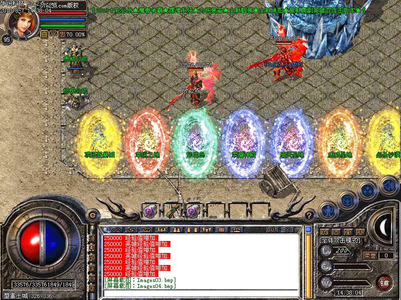 激情殿堂:每秒1200万经验200万内功经验!(可PK区域,可挂到本服顶级200级,内功255级)
