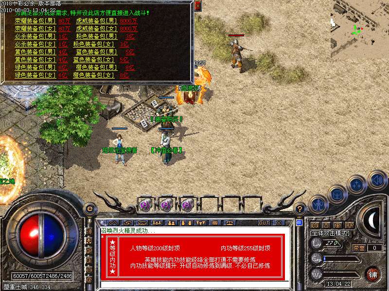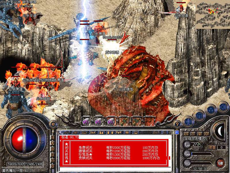 激情殿堂:每秒1200万经验200万内功经验!(可PK区域,可挂到本服顶级200级,内功255级)