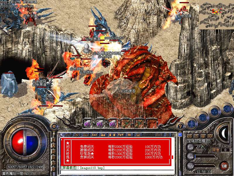 激情闭关:每秒1200万经验200万内功经验!(可PK区域,可挂到本服顶级200级,内功255级)